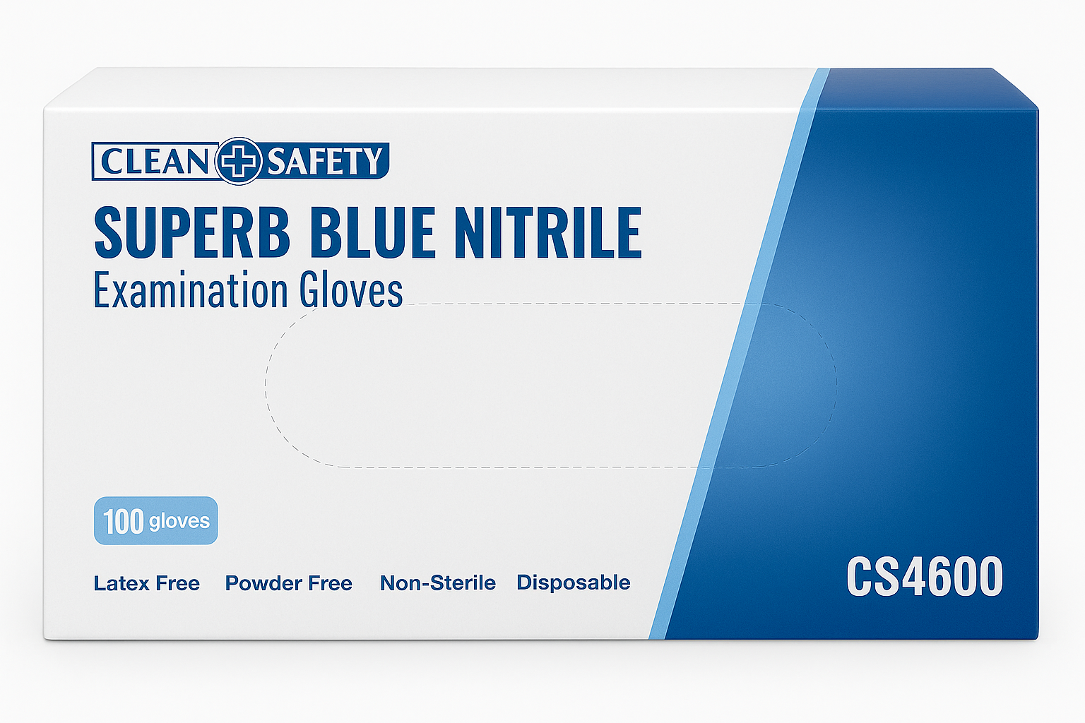 Upgrade your protection with Clean Safety Superb Blue Nitrile Examination Gloves – the affordable and reliable choice for healthcare, food service, and industrial use. These gloves are designed for comfort, strength, and versatility, making them perfect for hospitals, clinics, restaurants, food prep, and cleaning applications.
